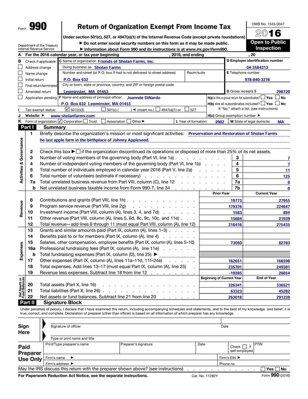 The Friends of Sholan Farms strongly believe in organizational transparency.
